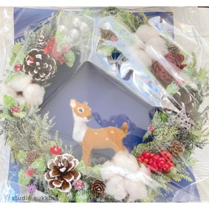 直径26cm♡バンビと木の実のクリスマスリース コットンとベルミックス